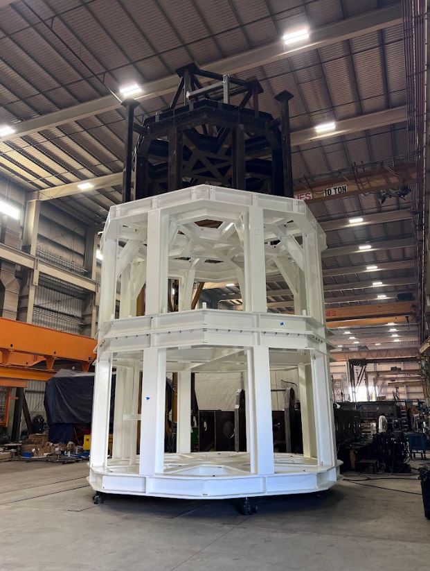 The structure stood nearly 35 feet tall, formed in a 19-foot hexagonal footprint, and weighed over 124,000 pounds. It was fabricated from four combined weldments using primarily wide flange beams. At this scale, fabrication is not just about putting steel together. Every joint becomes a structural decision, and every decision carries through to performance under load.